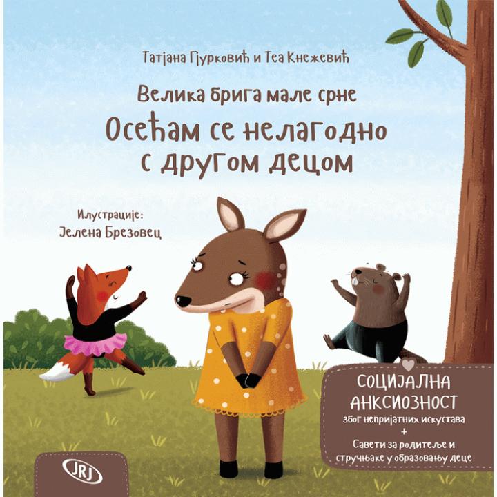 - Terapeutska slikovnica iz edicije Podrška roditeljstvu, jedna je od četiri knjige koja govori o anksioznosti kod dece. U ovoj slikovnici kroz jednostavnu pričicu za deca obrađena je tema anksioznost i panika zbog očekivanja okoline i neuspeha, a kao sve slikovnice iz ove edicije, i ova sadrži stručne savete za roditelje i stručnjake koji rade sa decom.Mala srna je mnogo volela da pleše, pa su je roditelji upisali u plesnu školu. Jednoga dana, srna nije više želela da ide na časove plesa. Vremenom je počela da odbija odlaske na sve aktivnosti i druženja. Nije želela da ide na rođendane, u posete drugarima ili u igraonicu. Roditelji su bili zbunjeni, jer srna nije znala da im objasni zašto više ne želi da se druži s drugom decom. Sve su ispričali učiteljici zečici, koja im je objasnila da se možda radi o tome da je srnica imala neka neprijatna iskustva u prošlosti, pa se sada oseća nelagodno i nesigurno u sličnim situacijama. Ova slikovnica iz edicije „Podrška roditeljstvu“ bavi se temom socijalne anksioznosti čiji uzrok leži u neprijatnim iskustvima iz prošlosti. Razlozi izbegavanja socijalnih situacija mogu biti vezani za neko konkretno iskustvo deteta s drugom odraslom osobom ili vršnjakom, za pravila ponašanja ili neka druga očekivanja, ali mogu biti vezani i za neprijatno senzorno iskustvo. Priča i saveti za roditelje u ovoj slikovnici pomažu svim članovima porodice da razumeju uzroke, uverenja, osećaje i ponašanja koja prate socijalnu anksioznost i pružaju im osnovne savete kako da se nose sa ovim stanjem.Neprijatno iskustvo može biti telesno (senzorna nelagoda, nešto što je fizički teško izdržati) ili emocionalno (posramljenost, odbacivanje), što može podstaći dete da izbegava neku aktivnost ili socijalno okruženje. Socijalna anksioznost kod dece i mladih odnosi se na intenzivnu zabrinutost vezanu za socijalne situacije ili javni nastup (npr. u vrtiću, u školi, na treningu ili nekoj drugoj aktivnosti). Dete može da pokazuje zabrinutost da će nešto da pogreši, da se osramoti, da će biti odbačeno od strane drugih ili da neće nešto uspeti onako kako bi želelo.Razlozi izbegavanja socijalnih situacija mogu biti vezani za neko konkretno iskustvo deteta s drugom osobom (odraslom osobom ili vršnjakom), ali mogu biti i u vezi sa neprijatnim senzornim iskustvom. Drugim rečima, u nekoj situaciji nadražaji (npr. buka, dodiri, mirisi, interakcija, brzina davanja instrukcija…) mogu biti preplavljujući za dete, a samim tim stresni i odbojni.Kako ćemo videti u ovoj priči, u cilju smanjenja anksioznosti kod deteta, važno je da roditelji razumeju da sigurno postoji neki uzrok anksioznosti i da nauče kako da pomognu detetu da vrati osećaj sigurnosti. Saveti za odrasle na kraju slikovnice mogu im u tome pomoći.
